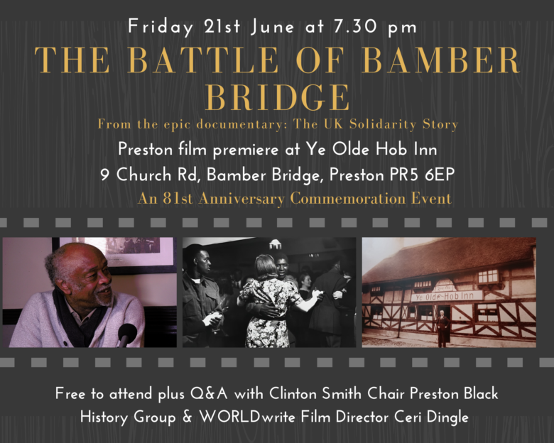 The Battle of Bamber Bridge is a short film, chapter 4 of a series of films produces by the charity WORLDwrite, The UK Solidarity Story. The full film premiered in London in April 2024 and audience feedback shows that most felt this chapter was the most poignant and inspiring of all the chapters.