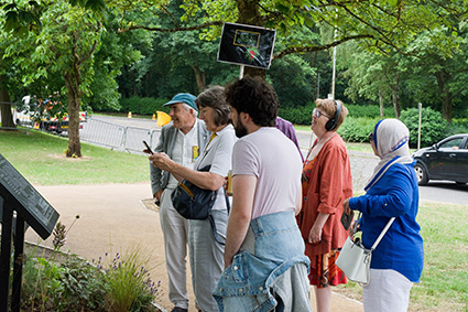 Beginning of the history walk by the memorial plaque in the garden outside the ‘Hob’.