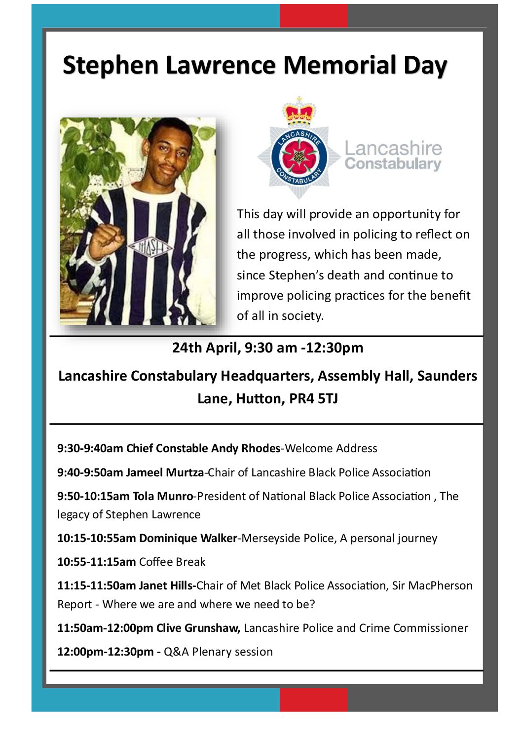This day will provide an opportunity for all those involved in policing to reflect on the progress, which has been made, since Stephen’s death and continue to improve policing practices for the benefit of all in society.
