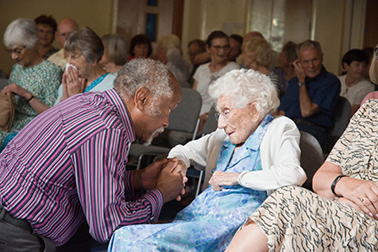 Clinton Smith greets Eunice Byers