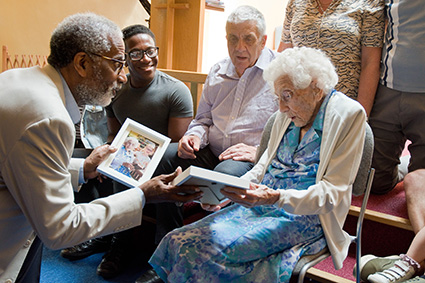 After the service we took photos to record the events and Gregory Cooke presented Eunice with framed photos from the interview taken by Tony Maiden, PBHGs photographer.