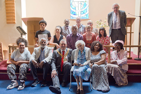 Members of Preston Black History Group with Prof Gregory Cooke, Mayor and Mayoress Chris and Kim Lomax, Eunice Byers and her family.