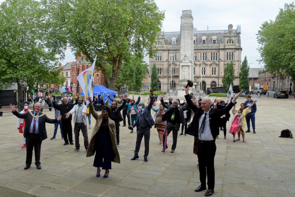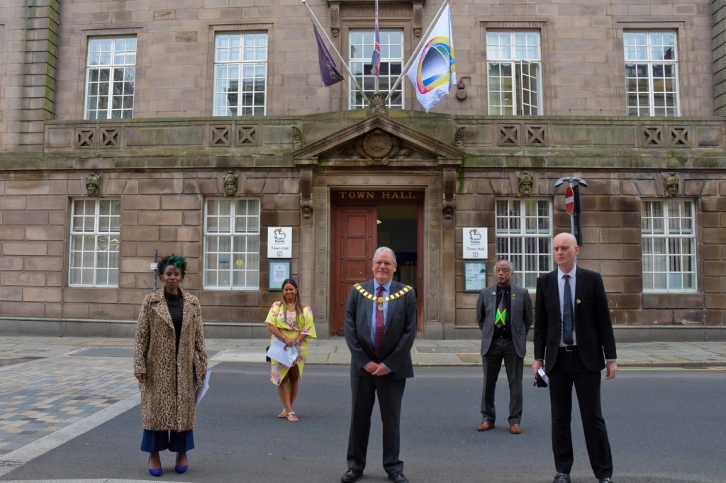 On Monday 22nd June at 10am the newly designed Windrush Celebration flag was raised above Preston Town Hall to mark Windrush Day. The event celebrated the wide-ranging contributions of the Windrush community to the city.